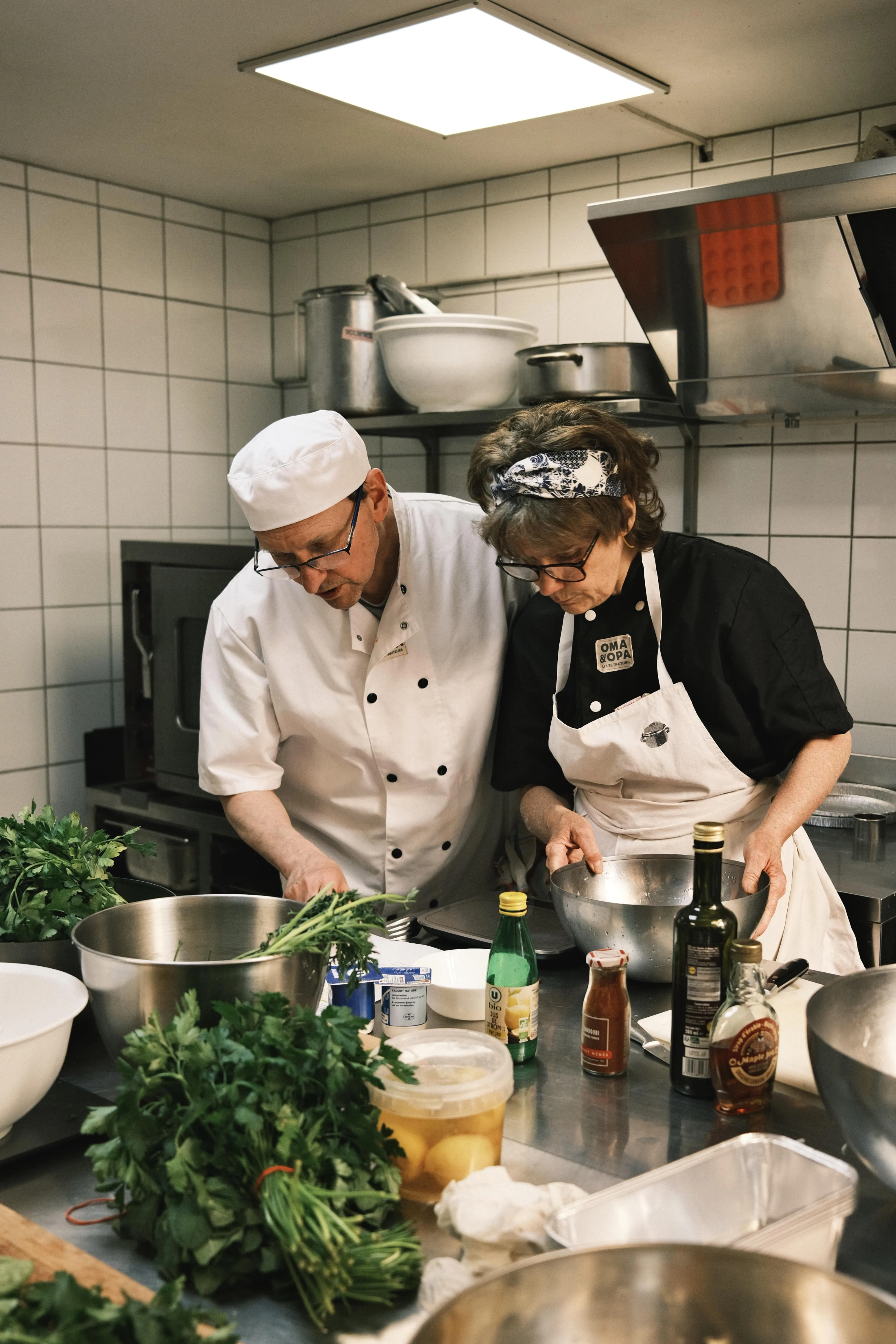 Chez OMA&OPA, ce sont des jeunes retraités passionnés de cuisine (les Retraiteurs) et qui ont à coeur de transmettre leurs savoir-faire, qui vous régalent.