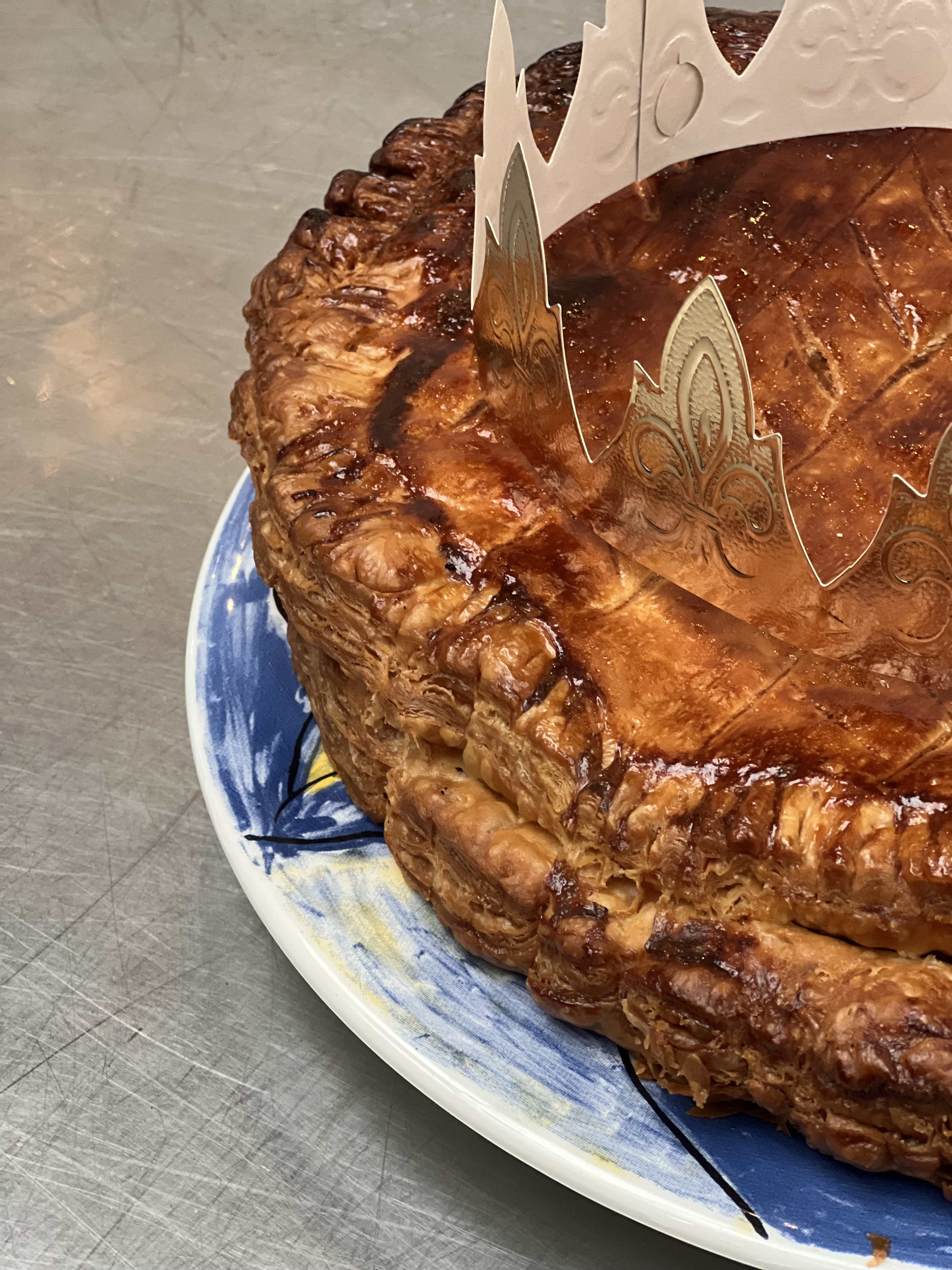 Nos Retraiteurs ont préparé leur recette signature de Galette frangipane, une pâte dorée et croustillante, au beurre AOP, garnie d’une crème d’amandes généreuse, selon des méthodes artisanales transmises de génération en génération.